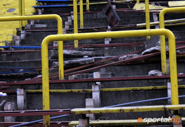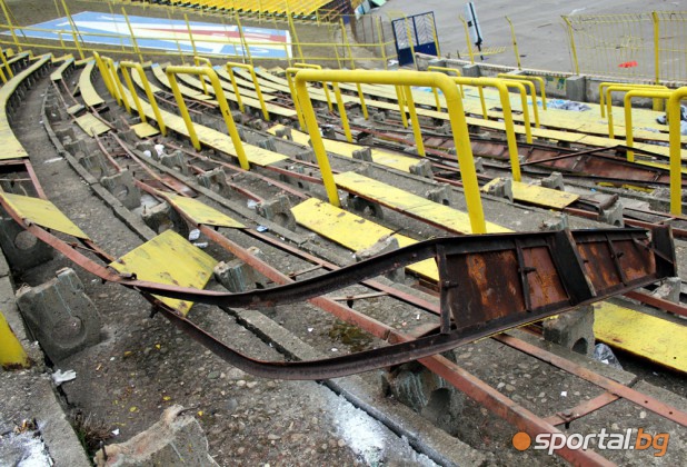 Два дни след Вечното дерби Левски - ЦСКА (1:3) от 16-ия кръг на "А" група, на което полицията изгони "червените" фенове от стадион "Георги Аспарухов", камерата на Sportal.bg надникна в Сектор "Г", където седяха ултрасите на "армейците". Вижда се, че той буквално е сринат със земята. Вандалите, заради които пострадаха всичките привърженици, са разрушили сектора. Освен оградите, те са изкъртили винкели, железа и цели бетонни блокове, тежащи няколкостотин килограма. Същото се е случило и с голяма част от ламаринени седалки, а двете тоалетни, съответно мъжката и женската, са направо разпилени на парчета.