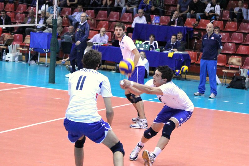 ФРАНЦИЯ: Жан Ориол, Николас Льо Гоф 1, Тибо Брукер 7, Станислас Рабилие 14, Микаел Акамбрей 15, Елдин Демирович 9 - Лудовик Дюе-либеро (Йонас Агение, Клемен Даниел, Готие Лалует, Джордан Кортеджани 1)
