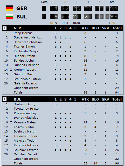 ГЕРМАНИЯ - БЪЛГАРИЯ 1:3 (24:26, 22:25, 25:20, 23:25)