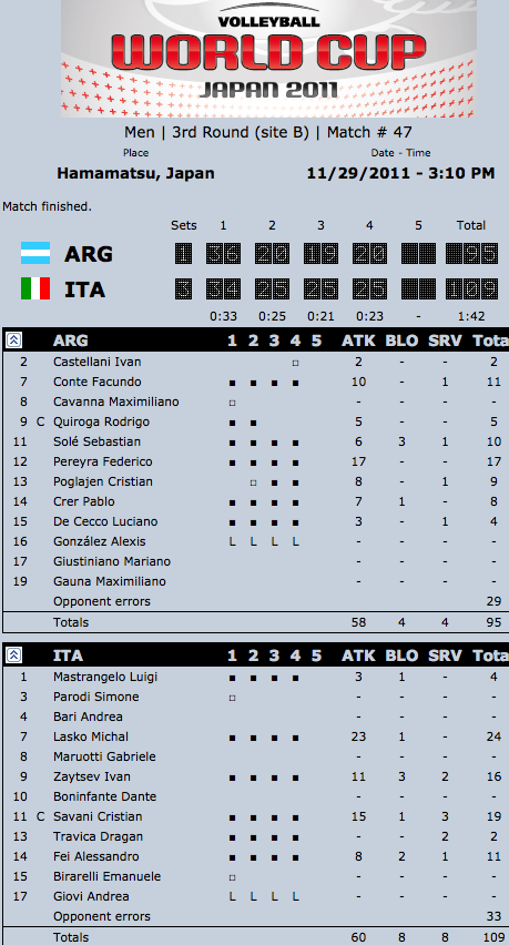 "Адзурите" записаха 6-та победа от началото на турнира и се изкачиха на 3-то място във временното класиране със 17 точки. Лидер е Полша, следвана от Русия. Ако тази тройка се запази до края на надпреварата, това би улеснило максимално България и останалите европейски отбори, които ще се борят за една квота за Лондон 2012 на квалификационния турнир в София през май.