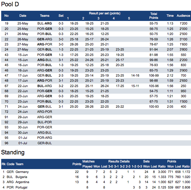 Волейболистите на Германия са само на една крачка от историческо класиране за участие във финалите на Световната лига в София (4 - 6 юли). Възпитаниците на Витал Хайнен днес победиха България с 3:1 на турнира в Гимараеш и вече имат в актива си 22 точки с 6 повече от България (16 точки) и с 9 повече от Аржентина (13 точки), която обаче днес играе с аутсайдера Португалия.