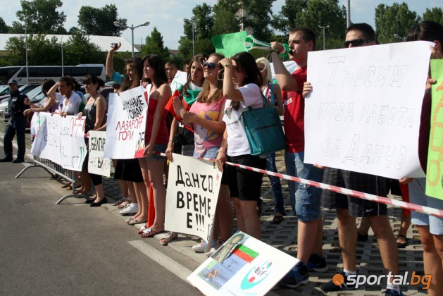 Около 200 недоволни от президента на БфВ Данчо Лазаров и УС на федерацията отново издигнаха плакати с искане за оставка и скандираха в подкрепа на българския волейбол като цяло.