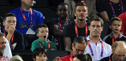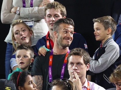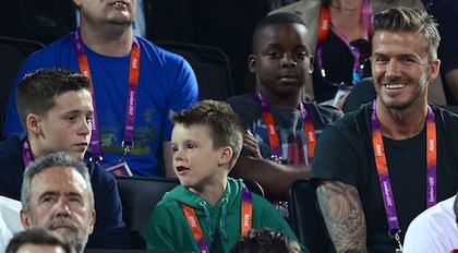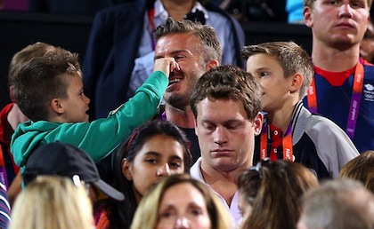 Звездата на Лос Анджелис Галакси Дейвид Бекъм отново е в английската столица. Този път той реши да заведе тримата си синове - Брулин, Круз и Ромео на волейболна среща от 1/4-финалите на олимпийските игри. По време на двубоя 6-годишният Круз не спря да си играе с татко си, като не пропусна и възможността да го хване за носа и да го прегърне. По всичко личеше, че на малкия му е скучно на мача, а в същото време Дейвид правеше всичко възможно за да забавлява сина си и едновременно с това да следи играта внимателно.
