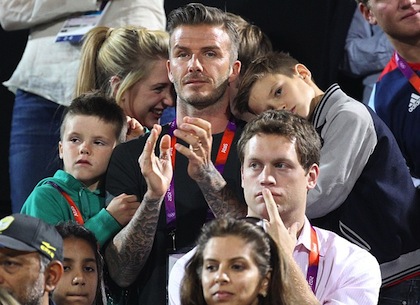 Волейболът не е първият спорт, на който бившият капитан на английския национален отбор води децата си. Преди това той заведе Бруклин на футболния мач между Великобритания и ОАЕ на "Уембли". Въпреки че селекционерът Стюарт Пиърс не повика Бекъм в отбора, той засвидетелства уважението си и не пропусна да подкрепи своите сънародници в борбата за олимпийските медали.