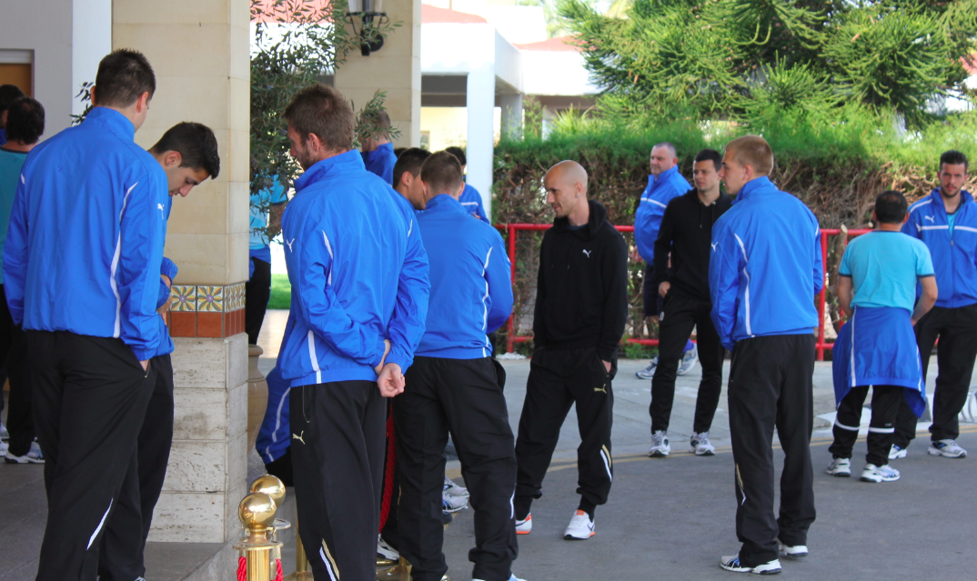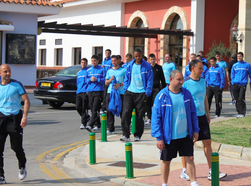“Сините” се събраха в 12,30 часа пред своя хотел и тръгнаха всички заедно през плажната ивица към ресторанта в центъра на Агиа Напа, където вече всичко е резервирано. Целият щаб демонстрира отлично настроение в слънчевия неделен ден в Кипър.
