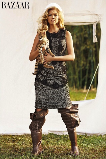 Последната фотосесия на Кейт Ъптън, в която блондинката позира с малко тигърче, лъвче и бебе гибон, предизвика гнева на защитниците на правата на животните, според които малките са били третирани като вещи. Снимките са направени за последния брой на списание "Harper's Bazaar", който ще излезе в 26 страни по цял свят. Според PETA животинките са изживяли истински стрес, докато са участвали в сесията.