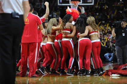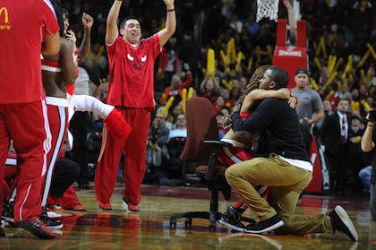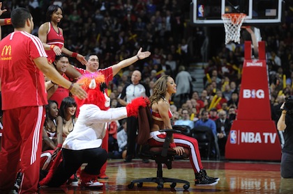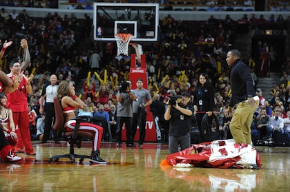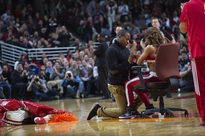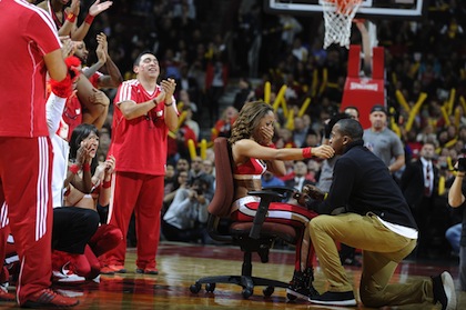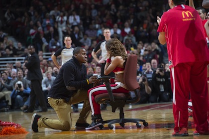 Мажоретката на Чикаго Булс Ариана не успя да устои на предложението на своя приятел, който се появи на полувремето на мача с шампионан а НБА Маями Хийт, облечен в надуваем костюм на талисмана на "Биковете" Бени. Девойката каза "Да" в центъра на терена, подкрепяна от колежките си, и от истинския Бени, издокаран в елегантен костюм. Предложението бе и на късмет на тима на Булс, който победи със 107:87.