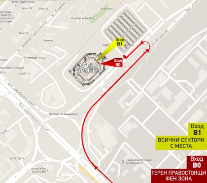 Важна информация за достъп до специалните места за хората с инвалидни колички и техните придружители е, че те ще имат директен и лесен достъп до тези места, влизайки през вход С0.