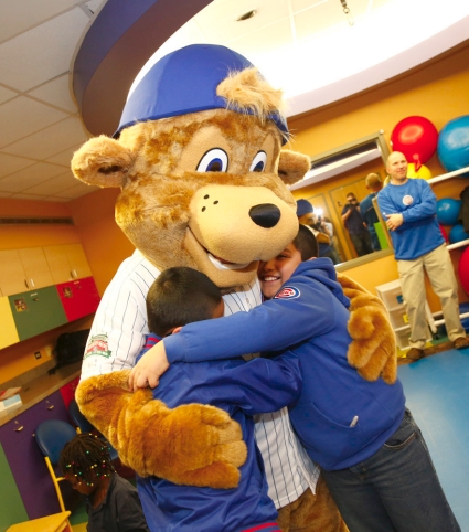 Облечен с фланелка на Къбс, обут в сини маратонки и нахлупил обърната на обратно синя шапка, звероподобният веселяк бе представен официално вчера по време на откриването на нов педиатричен център към болница в Чикаго. Кларк бе придружен от дузина таланти от системата на отбора в Майнър лийг.
