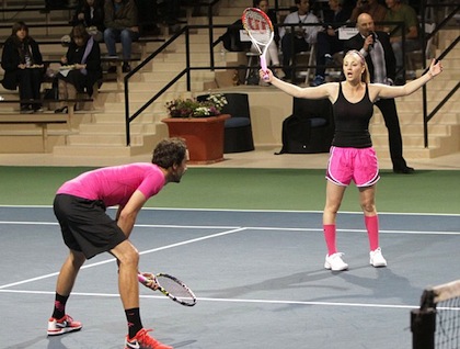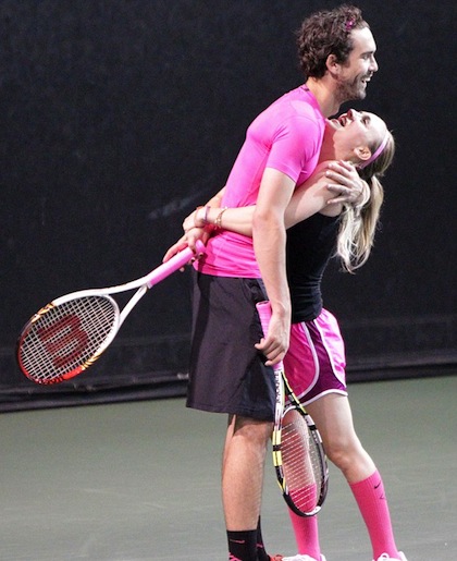 През уикенда младоженците участваха в благотворителен тенис мач на двойки и по всичко личеше, че се забавляват много на корта. Въпреки че не е професионалистка като своя съпруг, звездата от "Теория за големия взрив" впечатли със силни удари.