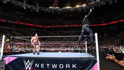 Пловдивчанинът, който в момента има вражда с Грамадата, говореше силно, застанал в центъра на ринга. Тогава за изненада на всички, Скалата се появи и взриви публиката в Бруклин. Джонсън започна да обижда нашето момче за това, че той представлява Русия. Звездата от Холивуд не пропусна да се заяде и с мениджърката на Миро - Лана. Русев обаче не му остана длъжен и му заповяда да напусне. Последваха няколко удара от страна на Скалата, които изхвърлиха българина от ринга.