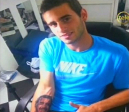 Алваро Рекоба е футболна икона в Уругвай. На 38 години той продължава да играе и да бележи голове в противниковите врати. "Китаеца", както е известен бившият нападател на Интер, очевидно е идол на два пъти по-младия си съотборник в уругвайския клуб Насионал Гастон Перейро. Явно уважението на 19-годишния футболист към ветерана е толкова голямо, че тийнейджърът татуира на ръката си лика на Рекоба.