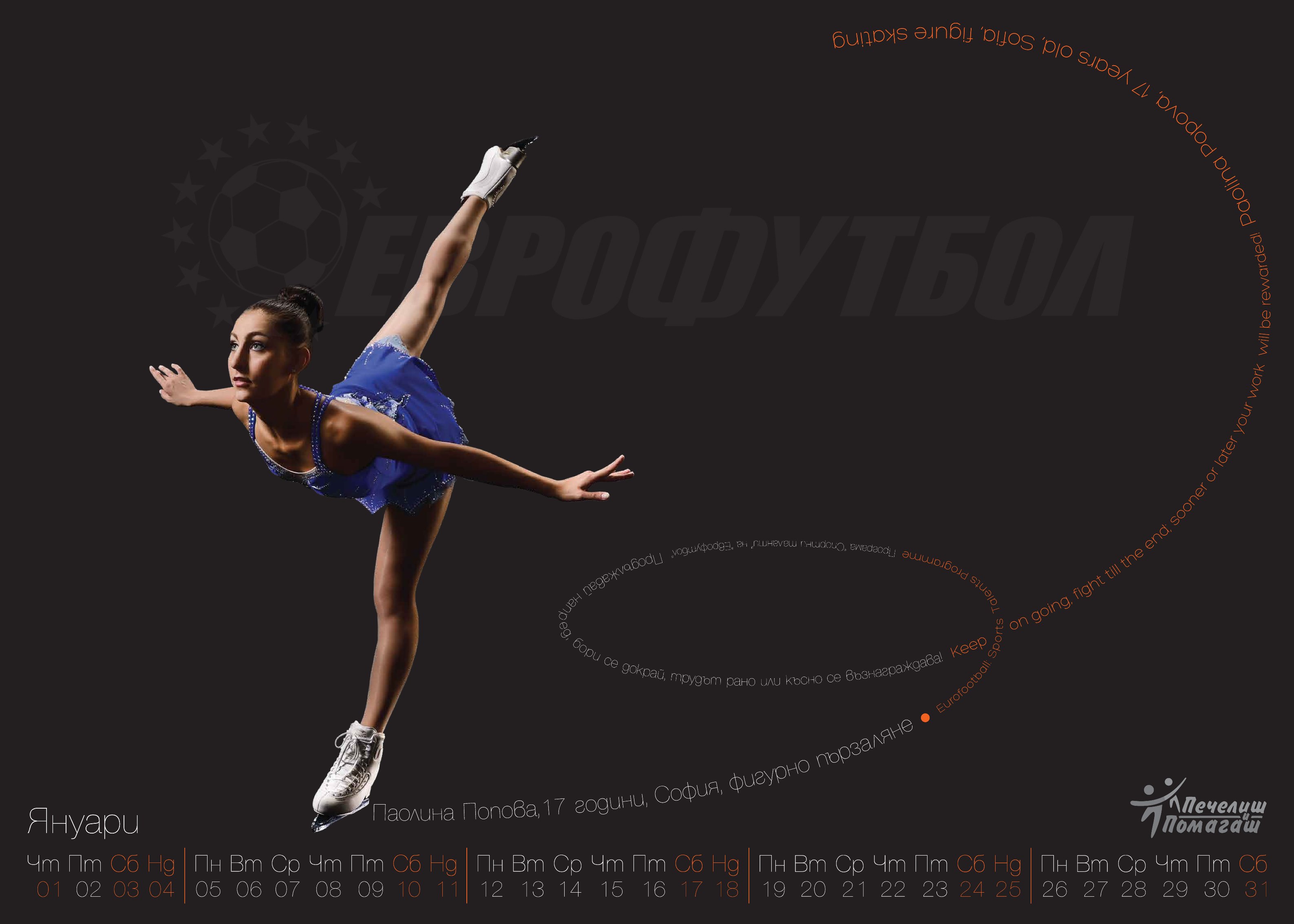 - ЯНУАРИ, Паолина Попова, на 17 г., от София – фигурно пързаляне. Поли демонстрира красота, грация и изящество в рисуваната си синя рокля, обсипана с камъни Сваровски. "Продължавай напред, бори се докрай, трудът рано или късно се възнаграждава!" е нейният девиз;