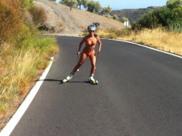 Испанската биатлонистка Виктория Падиал Ернандес зарадва феновете си с тренировка по бански. Сребърната медалистка от европейското първенство в Нове Место през 2014 година се готви за новия сезон, но жегата в Гранада я накара да захвърли дрехите.