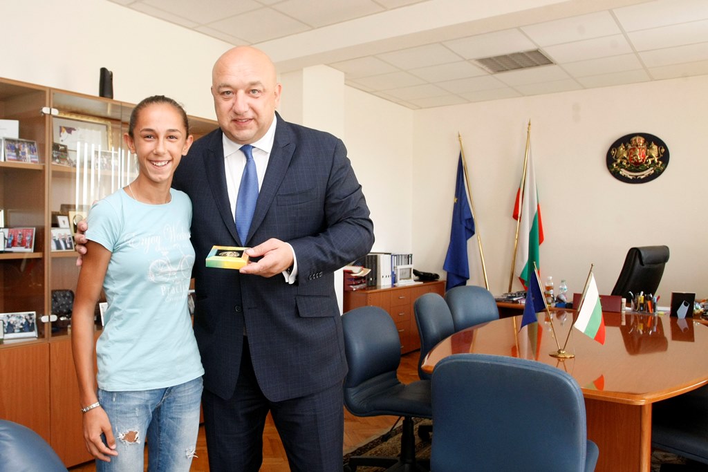 Министърът поздрави 15-годишната атлетката за отличното й представяне и страхотния резултат - 2:07.89 мин., който е и национален рекорд за девойки до 15 години.