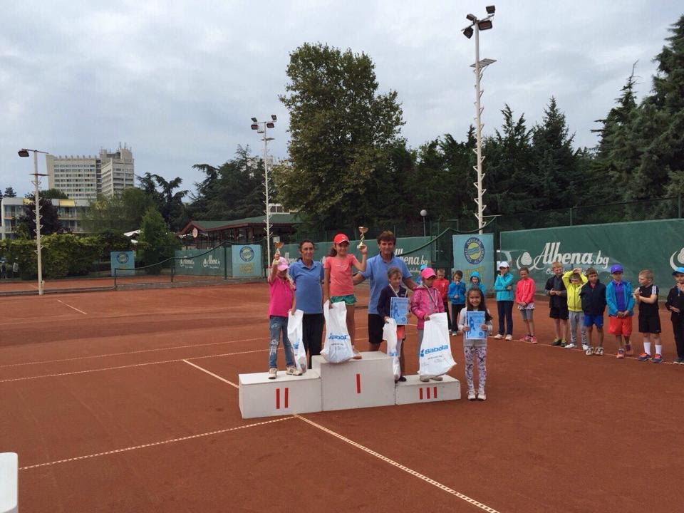 Общо 43 деца от Русия, Германия, Великобритания, Кипър, България, Франция и Румъния взеха участие в празничния международен тенис турнир за деца до 8 и 10-годишна възраст във ваканционно селище Албена.