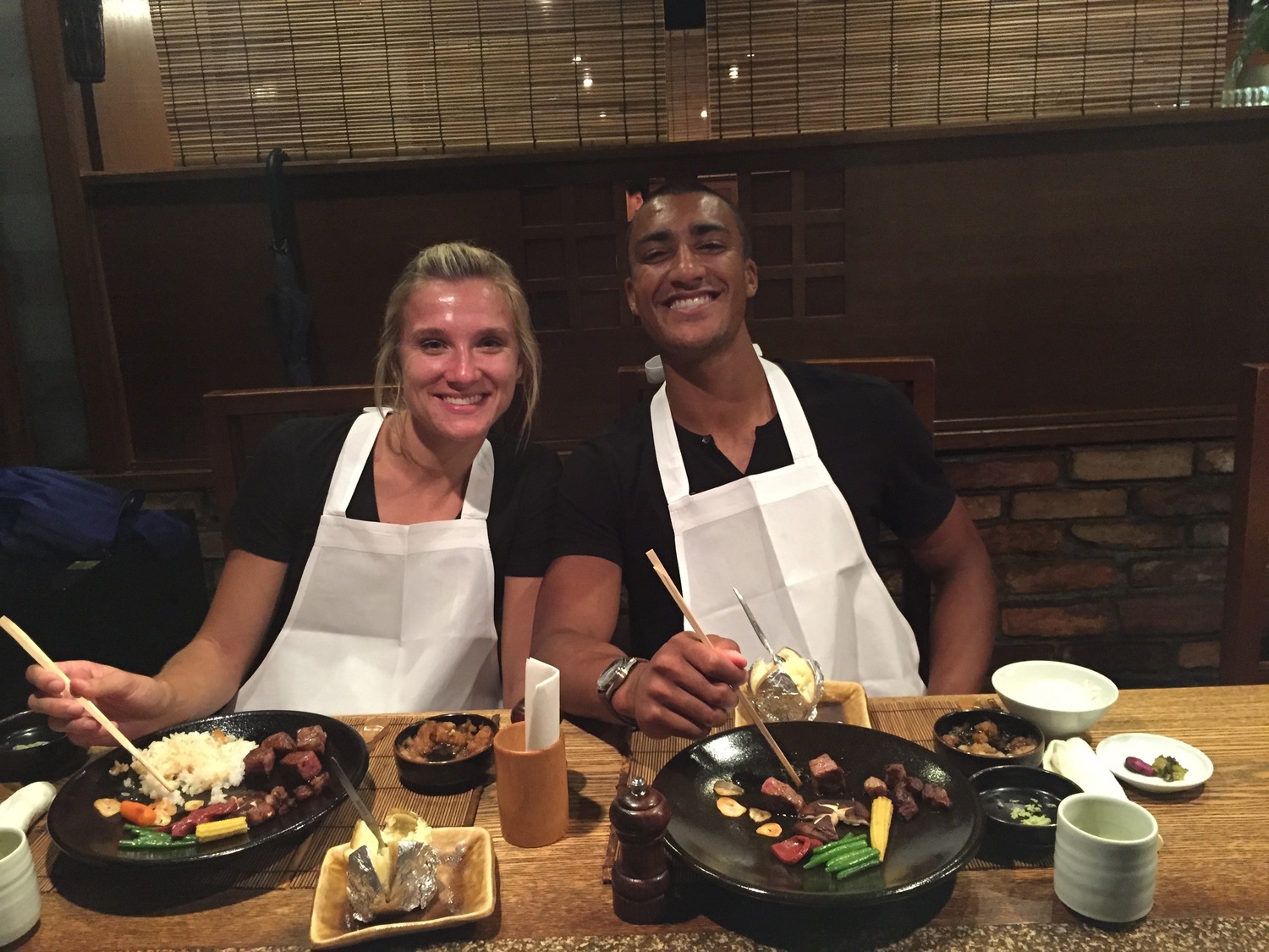 Световният шампион и световен рекордьор в десетобоя Аштън Ийтън и съпругата му Бриан Тайсън-Ийтън, сребърна медалистка в седмобоя от планетарния форум в Пекин, направиха много силен сезон и заслужено се отдадоха на почивка. Американецът и канадката избраха за дестинация екзотичната Япония. Двамата признаха, че са решили да посетят Япония заради положителните отзиви за хората и храната. И очакванията им определено се потвърдиха - семейство Ийтън обявиха, че не са срещали по-мили хора от японците през живота си. А храната…просто я обожават. Двамата прекараха доста време в дегустация на местната кухня в различни ресторанти, насладиха се на различни занимания от японската култура, обиколиха най-популярните музеи, бяха участници в традиционна чаена церемония, докоснаха се до мечове на самураи.