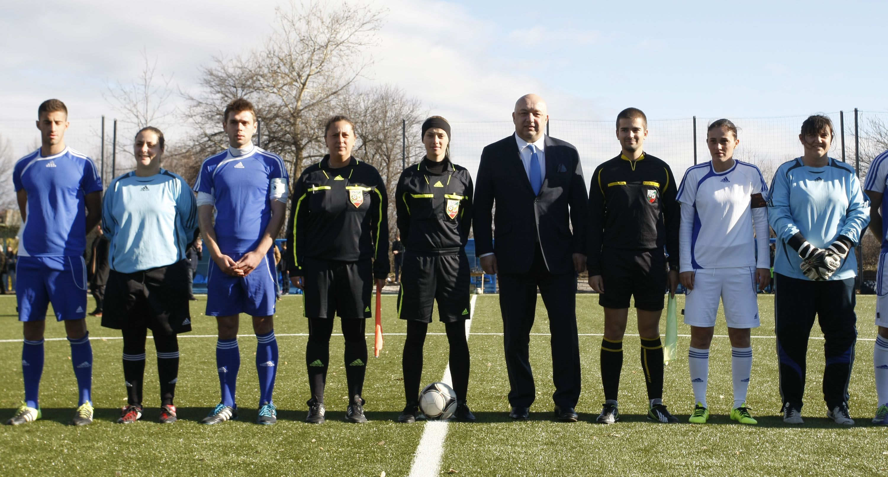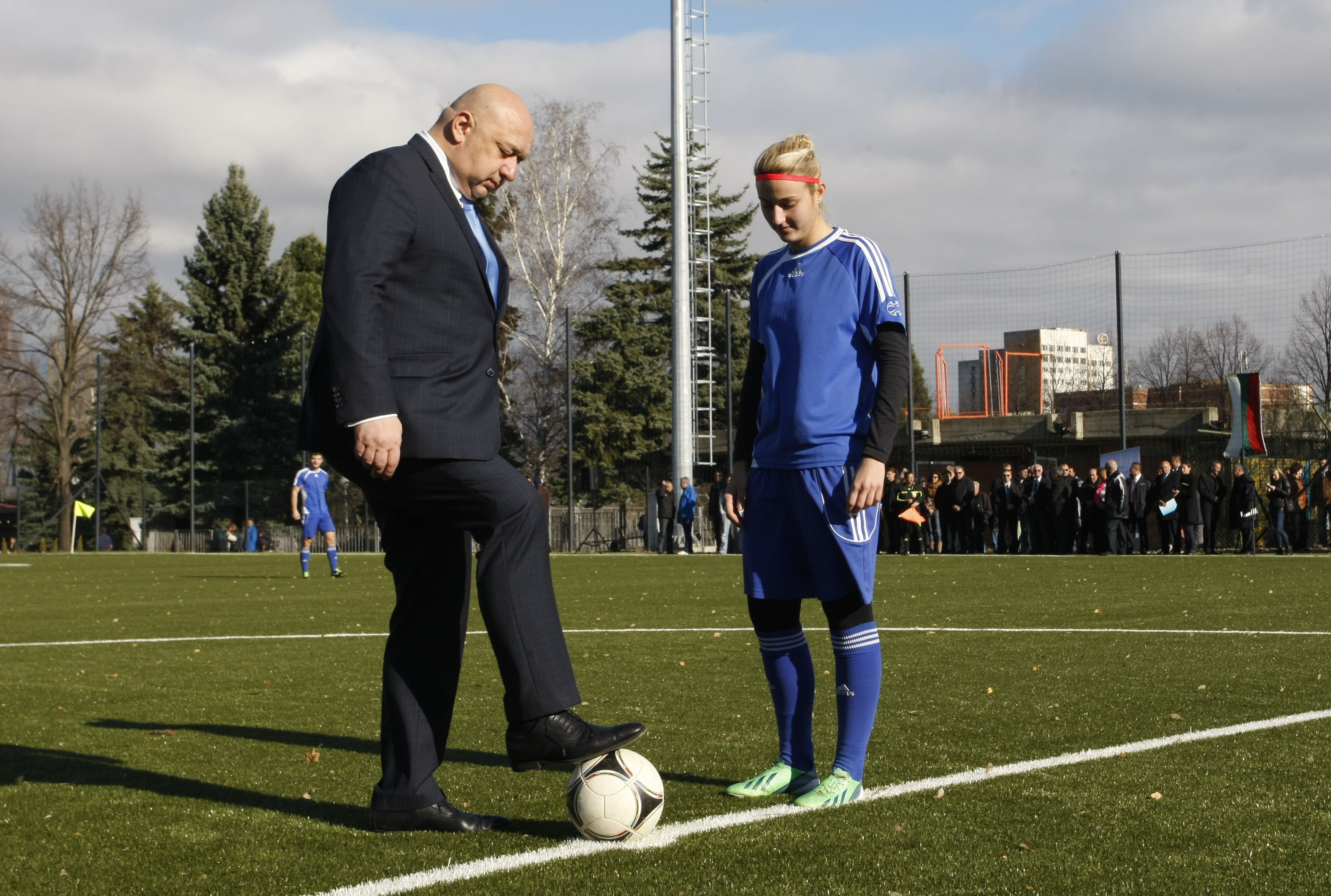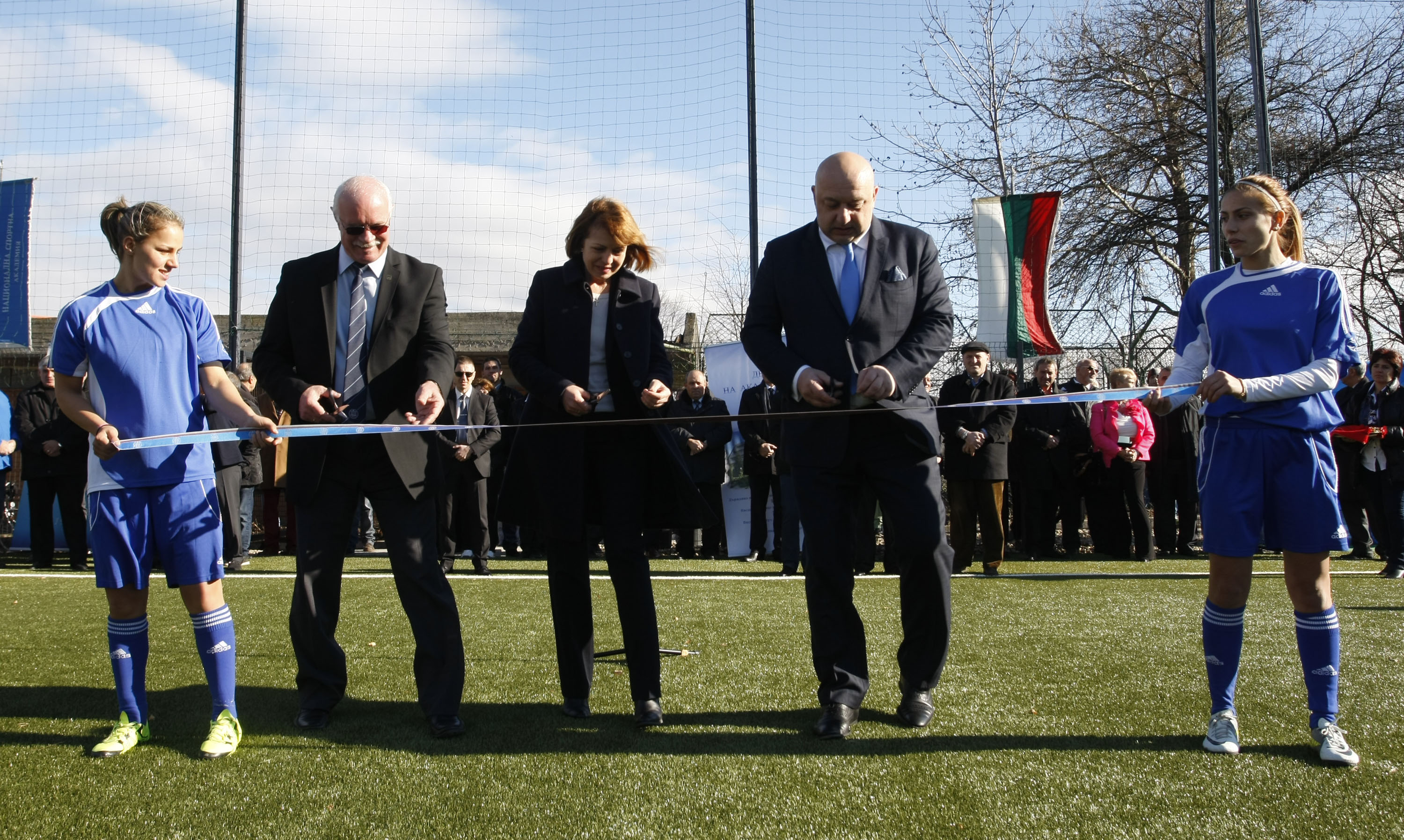 След тържественото прерязване на лентата от проф. Гешев, Фандъкова и Кралев, министърът даде старт от центъра на игрището на демонстративен футболен мач, в който участваха студенти от специалност футбол в Академията.
