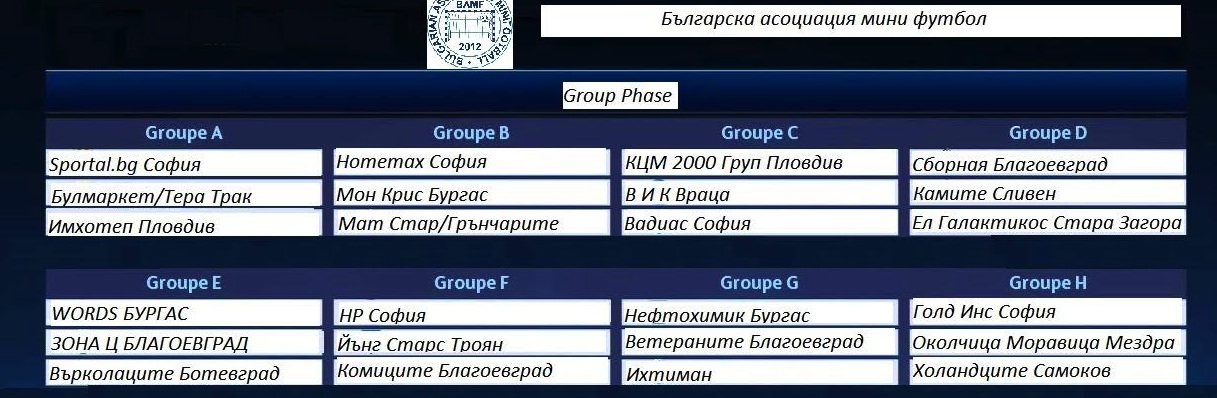 Отборът на Sportal.bg, който триумфира в "McDonald's Медия Лига", е в група "А". Там са още тимовете на Булмаркет и Имхотеп (Пловдив).