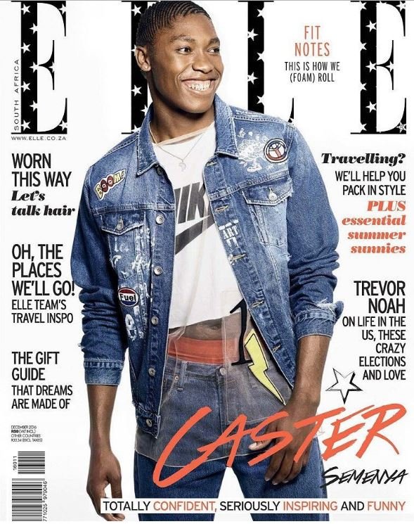 Олимпийската шампионка на 800 метра от Рио де Жанейро 2016 Кастер Семеня определено е сред любимите спортисти в Република Южна Африка. Тя е сред предпочитаните за гостувания в различни предавания, макар и мнението за нея по света да е разпределено на две между тези, които я харесват и тези, които смятат, че тя не трябва да се състезава с жени. Семеня отдавна е спряла да обръща сериозно внимание на думите по свой адрес и гордо позира за корицата на южноафриканската версия на списание Elle. Атлетката е заложила на дънков аутфит и къс бял топ на Nike, както и на широка усмивка.