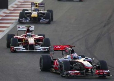 Втори днес под прожекторите на изкуствено осветление, на супер модерната писта "Яс Марина" остана другият претендент за короната Люис Хамилтън с Макларън, който притискаше мощно Фетел в началото, но така и не успя да влезе в пряк двубой с младия пилот на Ред Бул. Трети се класира Дженсън Бътън с Макларън, а четвърти остана Нико Розберг с Мерцедес-Бенц . В началото на състезанието излезе и кола за сигурност, заради атрактивната катастрофа между Михаел Шумахер и Адриан Сутил. И двамата се отърваха без контузии. Така Ред Бул спечели всичко този сезон, след като миналата седмица в Бразилия, австрийците взеха и трофея при конструкторите.