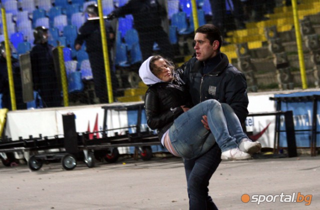 Само след минути, малко след началото на мача, същата тази порта се отвори, но не за да осигури лелеяния от хората въздух и пространство, а за да нахлуят бронираните рицари на честта и пагона и да се настанят по цялото протежение на оградата отгоре надолу. За да изпълнят разпореждането, господата приложиха прекомерна сила и без обяснения биеха с палките недоумяващите хора, сред които жени, деца и такива на достопочтена възраст. При нормалното запитване кому е нужно това пишещият тези редове също отнесе няколко палки в ребрата и изгуби и без това дефицитния въздух за близо минута.