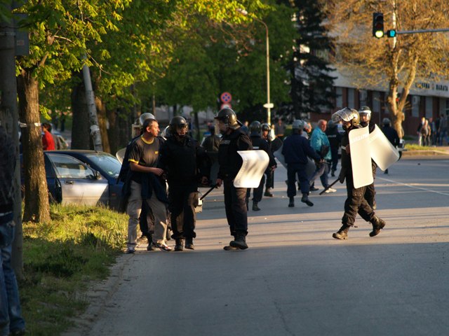 (На първата снимка събралите се фенове от Кърджали, настръхнали срещу Бултрасите от Пловдив, докато полицията бие фенове на Ботев - на втората и третата снимка)