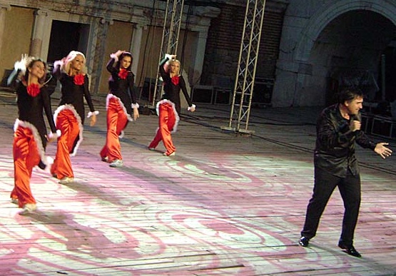 Най-милата сценка се разигра в края на шоуто, когато съпругата на Веско – Цеветанка, излезе под прожекторите, подари му цветя и го целуна толкова влюбено, че целият Античен театър се взриви от аплодисменти.