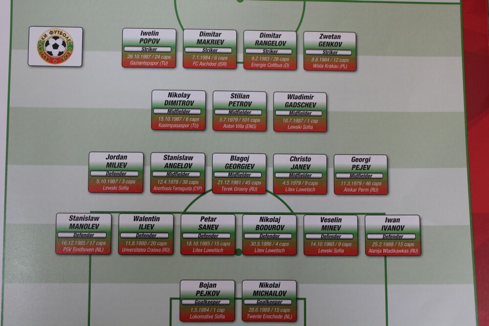 Така в списъка личат имената на вратаря на Локомотив (София) Боян Пейков и защитниците Веселин Минев, Йордан Милиев и Станислав Манолев. В същото време Георги Пеев, Станислав Ангелов, Христо Янев и Николай Димитров са халфовете, които по принцип липсват, а Димитър Рангелов и Димитър Макриев допълват представените от швейцарците играчи, които ги няма в Базел.