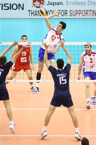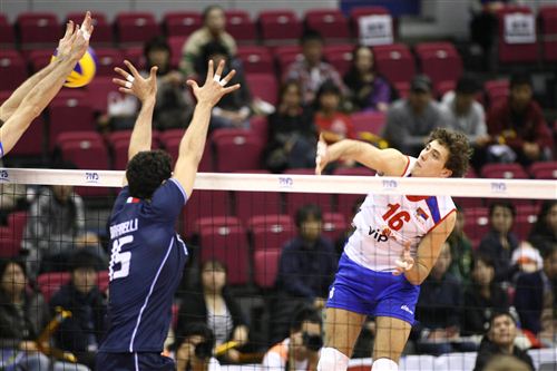 Вицешампионите на Европа от Италия победиха първенеца на Стария континет Сърбия с 3:1 (25:20, 25:18, 25:22, 25:20) в мач от 7-ия кръг на Световната купа, който се игра в Хамамацу.
