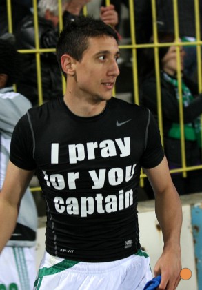 Халфът на Лудогорец Михаил Александров показа, че е бил подготвил специална фланелка с надпис в подкрепа на болния от левкемия капитан на националния ни отбор и Астън Вила Стилиян Петров. Александров щеше да покаже фланелка с напдиса, гласящ: "I pray for you captain" (в пр. от англ. ез. "Аз се моля за теб, капитане" - б.р.), ако бе отбеязал гол в мача на тима си с Левски в понеделник вечерта. Срещата на стадион "Георги Аспарухов" завърши с победа за разградчани с 1:0 с гол на Иван Стоянов през първото полувреме.