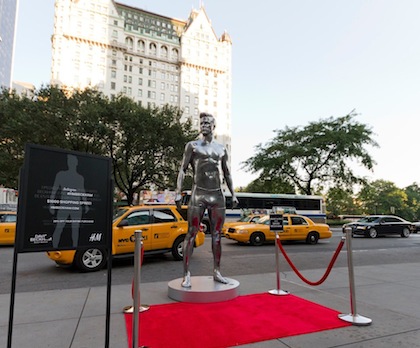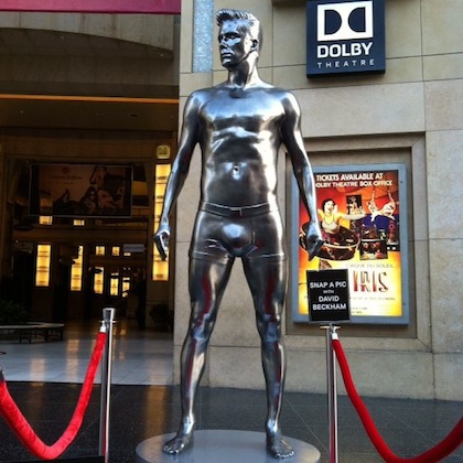 Статуи на Дейвид Бекъм в реален размер бяха издигнати пред магазините на H&M в Ню Йорк, Лос Анджелис и Сан Франциско. Откриването им съвпадна с официалното излизане на новите черно-бели снимки от серията бельо, която футболистът на ЛА Галакси има в световноизвестната верига магазини. На тях бившият капитан на английския национален отбор отново показва покритото си с татуировки стегнато тяло и предизвика доста коментари по повод големината на мъжеството си.