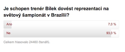 Нулевото равенство срещу България засили още повече натиска върху селекционера на чешкия национален отбор Михал Билек. И преди двубоя в Прага феновете на четвъртфиналистите от последното европейско първенство недоволстваха от слабата резултатност и липсата на блясък в играта на тима, а мачът на "Дженерали Арена" наля още вода в мелницата на критиците. Показателни са резултатите от анкета в сайта sport.cz. На въпрос ще успее ли Билек да класира Чехия на Мондиал 2014, цели 93% от гласувалите близо 25000 души отговарят с "не" и само 7% са оптимисти, че Петер Чех и компания ще се преборят за виза за световното първенство.