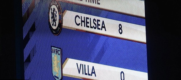 Отборът на Челси постигна впечатляващо 8:0 срещу Астън Вила, с което се изкачи до третото място в класирането на Висшата лига и ще посрещне коледните празници в отлично настроение. Възпитаниците на Рафаел Бенитес записаха рекордно постижение за клуба в историята на Висшата лига и нанесоха най-тежката загуба на бирмингамци. Фернандо Торес вкара поредния си гол от идването на Рафаел Бенитес начело на "сините" от Лондон насам, за да даде начало на разгрома, а след почивката гостите бяха като "разграден двор". Резултатът съвсем спокойно можеше да е двуцифрен в полза на домакините, след като Лукас Пиасон пропусна дузпа, а гол на Фернандо Торес бе отменен.