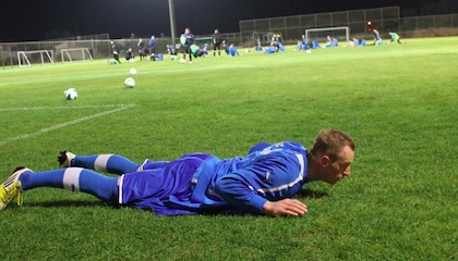 Следобедната тренировка на “сините” в Агиа Напа бе изцяло с топка, което се понрави на играчите на Илиев. След няколко упражнения с коженото кълбо специалистът за първи път избра два състава от по 11 човека за мини двустранна игра, която беше решена от попадение на тима с потниците, дело на Жоао Силва с глава.