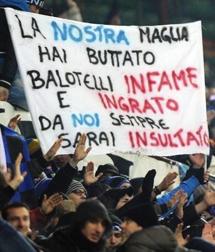 Скандалният Марио Балотели отново беше обиждан на расистка основа - този път от тифозите на Интер. Това стана по време на снощното дерби между "нерадзурите" и Милан от Серия "А". Нападателят "заслужи" това отношение, защото преди време стана популярен точно в Интер. Феновете са ядосани, че той с лекота прие да играе за омразния им Милан. Балотели обаче им отговори, като при прибирането си към тунела се хвана за гениталите си.