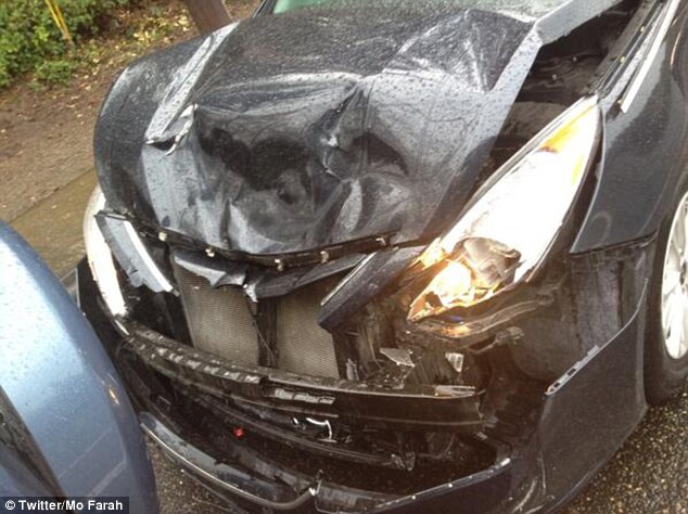 "Пиян шофьор разби колата на жена ми..!! И след това избяга..!!", написа Фара в Туитър и публикува снимка на потрошената кола на съпругата си.