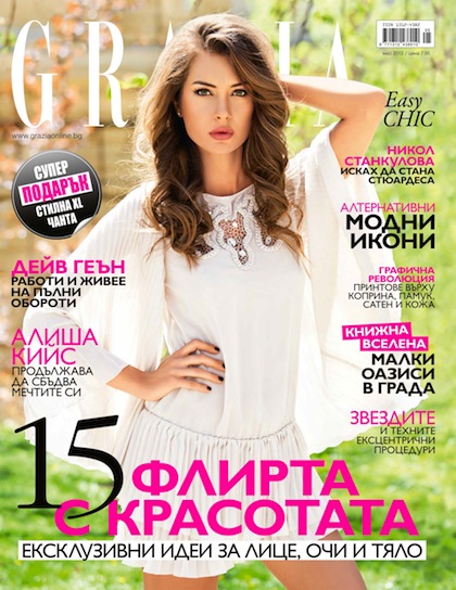 В новия брой на GRAZIA можете да откриете още най-актуалните бюти хитове, фешън тенденциите за последния месец на пролетта, както и защо едни от гигантите в модната индустрия избират за свои рекламни лица алтернативни знаменитости. Музикалната сцена пък е представена повече от подобаващо в две интервюта по ноти на вокала на Depeche Mode Дейв Геън и шоколадовата дива Алиша Кийс, които разказват за музикалната си кариера, семейството и трансформациите на сцената.