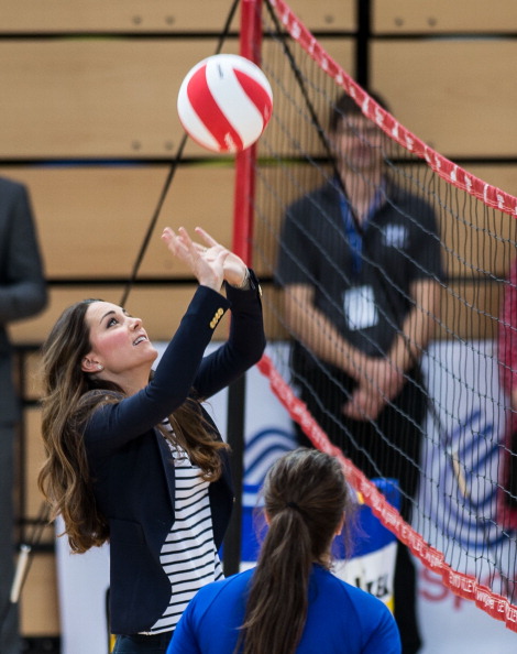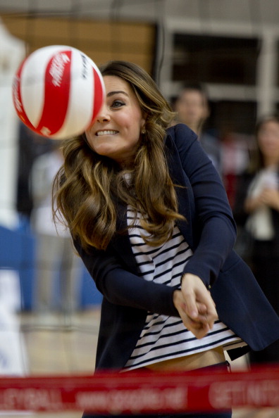 Херцогинята на Кеймбридж и съпруга на принц Уилям - Кейт Мидълтън, показа, че се намира в отлична форма три месеца, след като роди. Тя посети олимпийския парк в Лондон, като впечатление направиха високите й токчета, с които се разходи в спортния комплекс. Те обаче не й попречиха да покаже уменията си по волейбол.