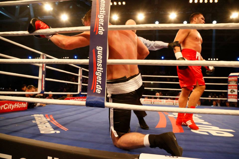 Третият рунд започна по-различен сценарий. Този път по-активен беше Кубрат, който още в началото пласира силен ляв прав. Американецът започна видимо да отпада и беше свален на ринга от Кубрат. Реферът започна да му брои нокдаун, но ударът на гонга го спаси.