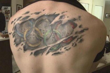 Ако някой олимпиец иска да си направи татуировка, едва ли има по-добър избор от това да му изрисуват олимпийските кръгове върху тялото. Канадският състезател по шорттрек Шарл Амлен има точно такъв татус на гърба и го демонстрира на феновете си в "Туитър".