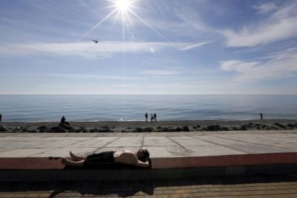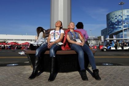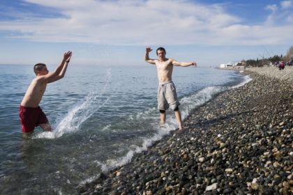 Хора се къпят в морето и си правят слънчеви бани на плажа. Разголени доброволки и запотени състезатели по потници. Това е обичайната гледка тези дни в Сочи, където температурите скочиха до 20 градуса. Едва ли е имало и ще има някога толкова топли и слънчеви Зимни олимпийски игри.