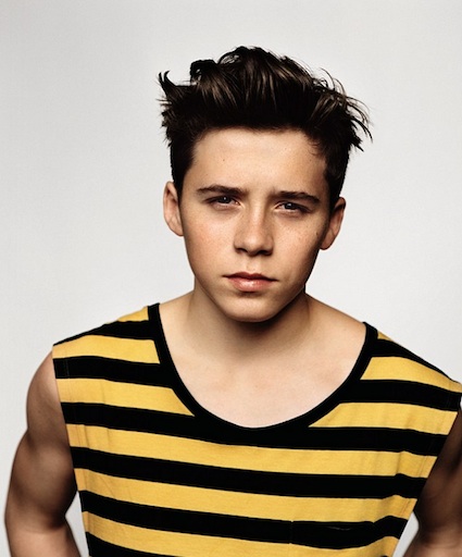 Виктория е известна със сериозната си и даже намръщена физиономия. Дейвид - с неустоимото си излъчване пред обектива, а и не само. При това положение не е чудно, че най-големият син на семейство Бекъм успява да комбинира всичко това в дебютната си фотосесия за списанието Man About Town. 15-годишният Бруклин  застана пред обектива на фотографа Аласдер Маклелан, който е семеен приятел на двойката и няма никакво съмнение, че строгото и едновременно с това загадъчно излъчване е било уловено по най-добрия начин.