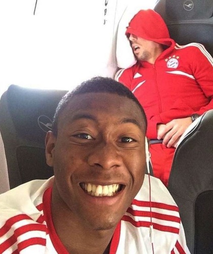 В понеделник Франк Рибери отпразнува своя 31-и рожден ден. И съвсем в реда на нещата, съотборниците му в Байерн (Мюнхен) го засипаха с поздравление в Twitter и Facebook. Левият защитник на "баварците" Дейвид Алаба се показа като голям шегаджия, публикувайки снимка на самия себе си и спящия на заден план Франк Рибери. Селфито на австриеца със стокаратова усмивка е направено в самолета и показва голмайстора в напълно различна светлина.