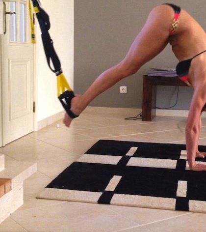 Заради натовареното си ежедневие на многодетна майка 30-годишната красавица не посещава фитнес зали, а тренира в домашни условия.