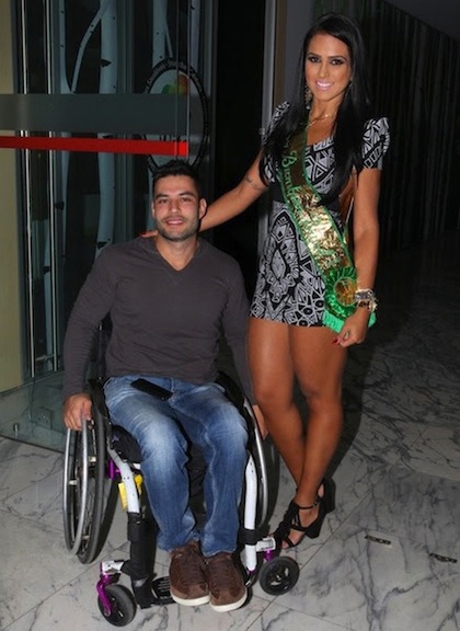 Тя бе придружена от приятеля си Рафаел Магаляеш, а фактът, че любимият й мъж е в инвалидна количка, предизвика възхищение в страната. Горещата бразилка гостува и в местна телевизия, където определи Кристиано Роналдо за най-красивия футболист на Мондиал 2014.