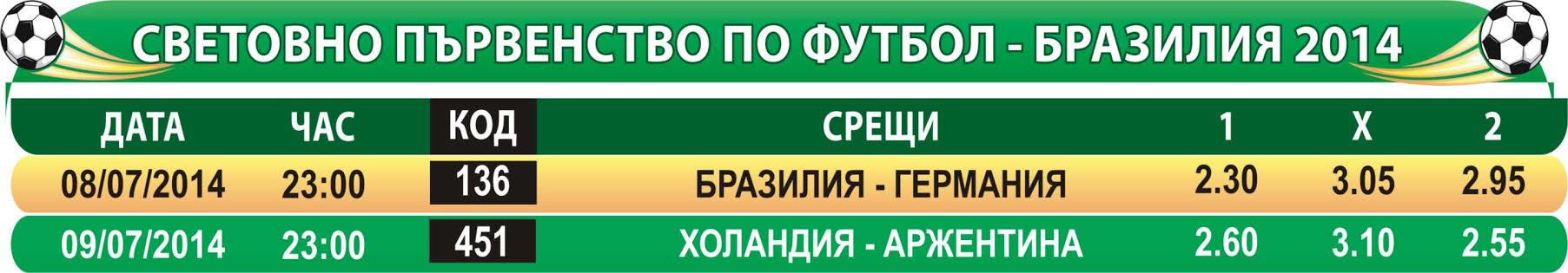 Бразилия - Германия Сингъл, Live „1“ 2.30 „Х“ 3.05 „2“ 2.29
