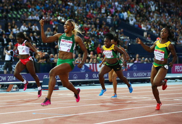 Нигерийската суперзвезда в атлетиката Блесинг Окагбаре спечели титлата на 100 метра на Игрите на Британската общност в Глазгоу с нов рекорд на надпреварата. Носителката на два медала от Световното първенство в Москва през миналата година не даде никакъв шанс на съперничките си и спря хронометрите на 10.85 сек за първото място. Двукратната олимпийска шампионка на 200 м Вероника Кембъл-Браун (Ямайка) спечели среброто с 11.03 сек, а сънародничката й Керън Стюърт се окичи с бронза с постижение от 11.07 сек. В Глазгоу Окагбаре ще стартира още на 200 м и в скока на дължина.