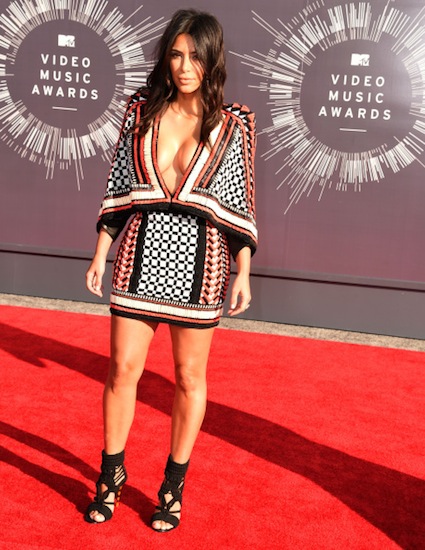 Ким влезе в ролята на водеща и представи британския певец Сам Смит. Освен това тя бе там, за да подкрепи съпруга си Кание Уест, който беше номиниран за най-добро хип-хоп видео за клипа към парчето "Black Skinhead". Рапърът обаче въобще не се появи на церемонията. Клюката носи, че той бил крайно недоволен от факта, че половинката му Ким Кардашян постоянно ходи с тоалети, които показват повече плът от необходимото.