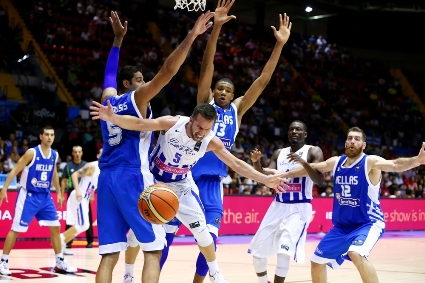 Световният вицешампион от Япония 2006 Гърция надигра Пуерто Рико и продължава без загуба в група В на Мондиал 2014. Баскетболистите на Фотис Кацикарис победиха пуерториканците с 90:79, като това бе трето поредно поражение за островитяните, които бяха без най-голямата си звезда - Карлос Аройо. Опитният гард пропусна двубоя заради травма в глезена, получена вчера.